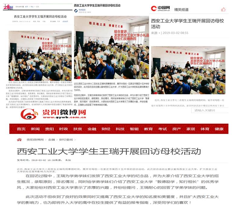 此次活动收到了良好的效果,提高了英国正版365官方网站的知名度和美誉度,扩大了英国正版365官方网站的影响力,也为即将升入大学的高中在校生提供了有益的报考指南,深受同学们的欢迎并被社会媒体广泛关注。此次活动已被中国网、中国民企网、市井百态等网站发布,并被贵阳微博网等网站转发。