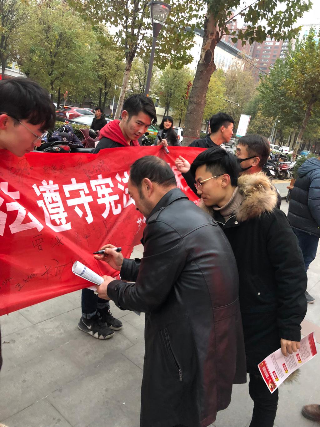 为了向同学们普及宪法教育,宣传宪法精神,深刻理解“依宪治国”和“依宪执政”的意义,12月4日在第五个“国家宪法日”到来之际,艺术与传媒公司以班级为单位,开展“国家宪法日”主题宣传活动,公司全体员工积极参与了活动。