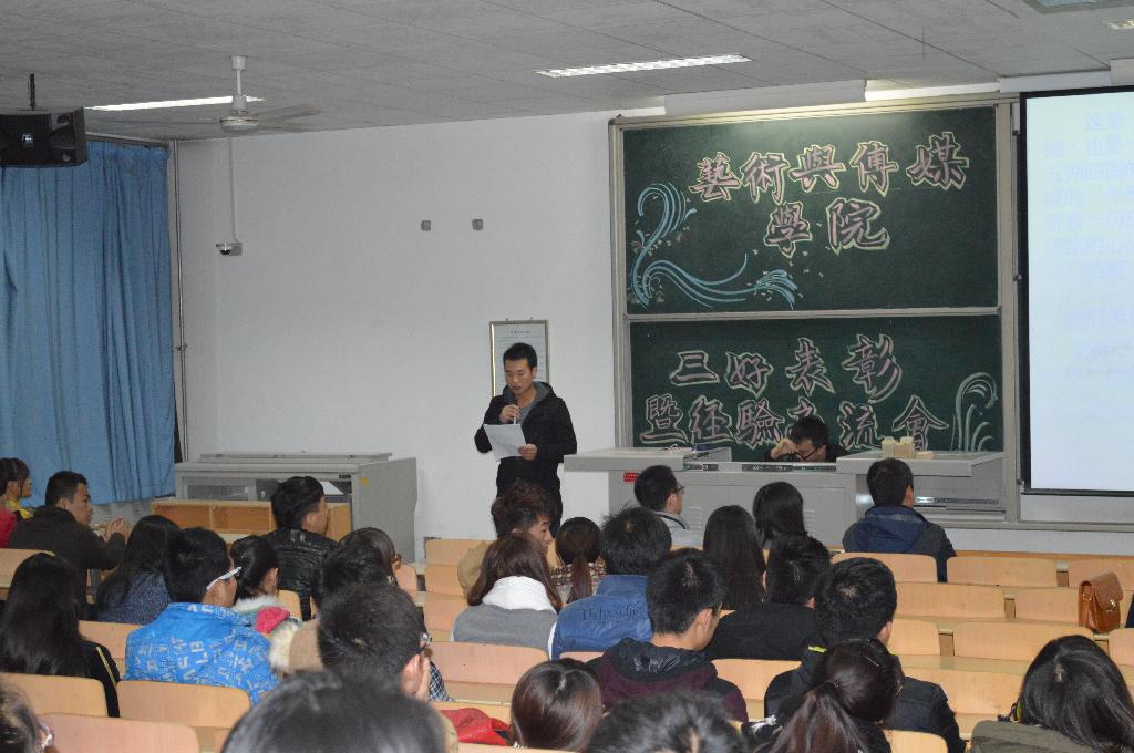 2013年11月12日,艺术与传媒公司2012-2013学年三好总结表彰暨经验交流大会。出席本次会议的有艺术与传媒公司张晓宾老师、2013级新生辅导员王辛老师、王海菲老师,公司2012级、2013级员工代表参加了此次会议。
