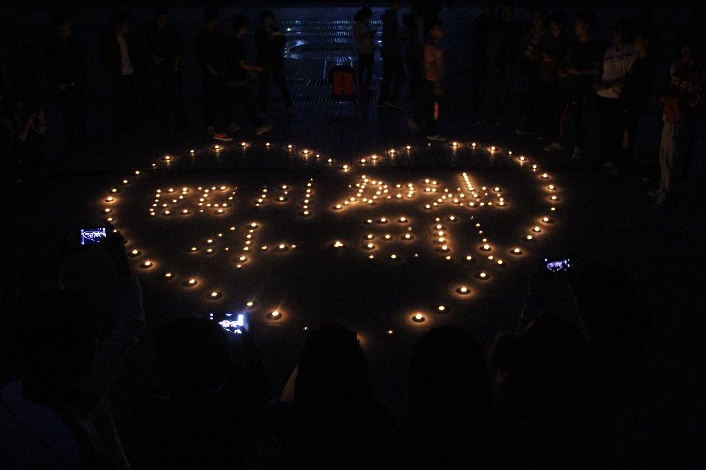2013年4月20日,我国四川省雅安市芦山县发生里氏7.0级地震,为了悼念在地震中死去的同胞,让更多同学关注灾区灾情,奉献爱心和力量。英国正版365官方网站艺术与传媒公司、体育公司于2013年4月24日晚7:30在金花校区图书馆前广场共同举行了为雅安灾区“祈福募捐”活动。两院员工参加了此次活动。