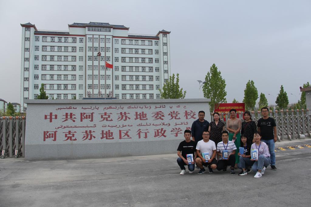 今年公司有包括公司石张宁、李飞两名同学在内的6位应届毕业生申请援疆,他们经过严格的选拔最终被录取在新疆阿克苏地区工作,调研组一行在阿克苏地委组织部的协助下,首先走访了公司2018年援疆的经济管理公司2014级员工张小妍,实地查看了她工作、生活的地方,听取了她援疆一年来的工作感悟,曹玉玲老师代表公司向张小妍同学赠送了纪念品并鼓励她按照组织安排,认真做好本职工作,不忘学习,在服务美丽新疆建设中做出贡献;随后,调研组一行来到阿克苏地委党校看望了正在那里学习的石张宁、李飞、胡婉婷、张秀娟和肖坎等6名同学,听取了他们在地委党校学习的情况和他们对援疆、对服务阿克苏的认识,同学们依次发言,公司石张宁同学表示:建设美丽新疆是时代的召唤更是青年人的责任和担当,自己将努力学习将青春热血洒向南疆大地,努力践行一名共产党员的初心和使命。曹玉玲老师代表公司向援疆员工赠送了纪念品,并希望同学们认真学习理论知识和当地文化、习俗,尽快适应阿克苏的环境,积极融入到当地的工作环境中去,希望同学们通过实际行动让阿克苏人民缔造的柯柯牙精神代代相传。