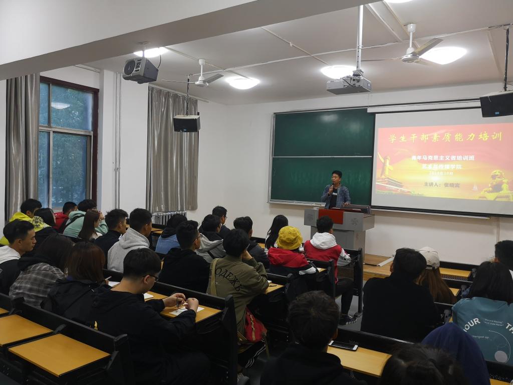 2019年10月23日,艺术与传媒公司第二十四期青年马克思主义者培训班正式开讲,第一讲由辅导员组长张晓宾以“理想信念教育”为主题开讲,2019级各班班长、团支书及主要团学干部参加培训。