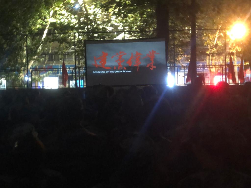 为了加强对员工的爱国主义教育,培养员工爱党爱国的意识,艺术与传媒公司于2020年10月20日19:00在篮球场组织进行露天观影《建党伟业》,全体2020级员工参加了观影活动。