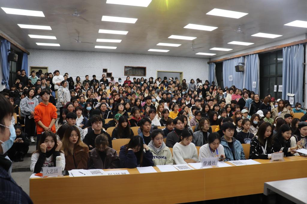 出席纳新大会的老师有院团委书记洪涛老师、2018级辅导员孙雅茹老师,大会由2020级新生苏文倩同学主持。各团学组织主席团成员、部长及2020级近400人参加大会。首先,洪涛老师简单介绍了各团学组织基本情况,并就同学在各社团的发展、个人定位、各社团所负责的工作进行了讲解,并提出相关的期望与要求。上届主席团代表石梓辰致辞,希望新生们能在团学组织内得到极大发展,提升自己的各项能力,并欢迎新生们的到来;随后,各团学组织负责人以PPT的形式向新生们介绍了各部门的详细情况:工作内容以及纳新要求。现场气氛活跃,同学们积极报名,取得了良好的纳新效果。