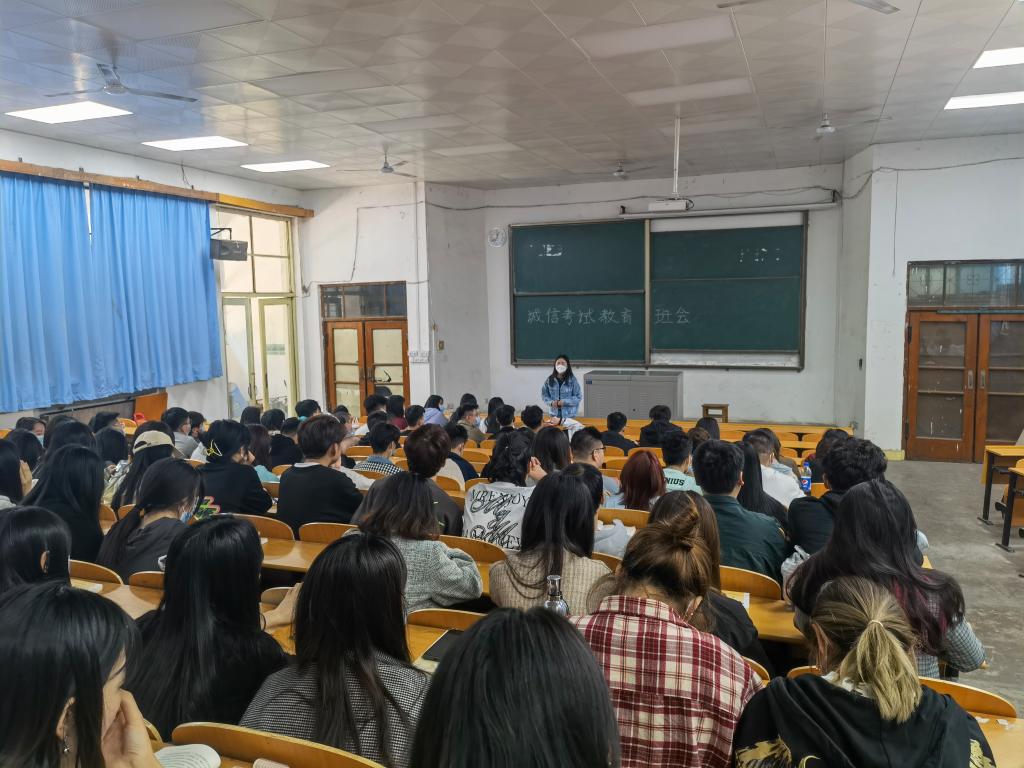 会上,董丹丹向全体同学强调:面对接下来的考试,要积极准备,认真复习,严守考试纪律、坚持诚信考试、杜绝考试作弊,任何时候不要存侥幸心理。并通过警示教育,向同学们再次说明了考试作弊的危害与严重性。同时,提醒同学们考试过程中全程佩戴口罩,服从防疫相关要求。会后,同学们认真阅读了“诚信考试承诺书”相关条款并自愿签字确认。