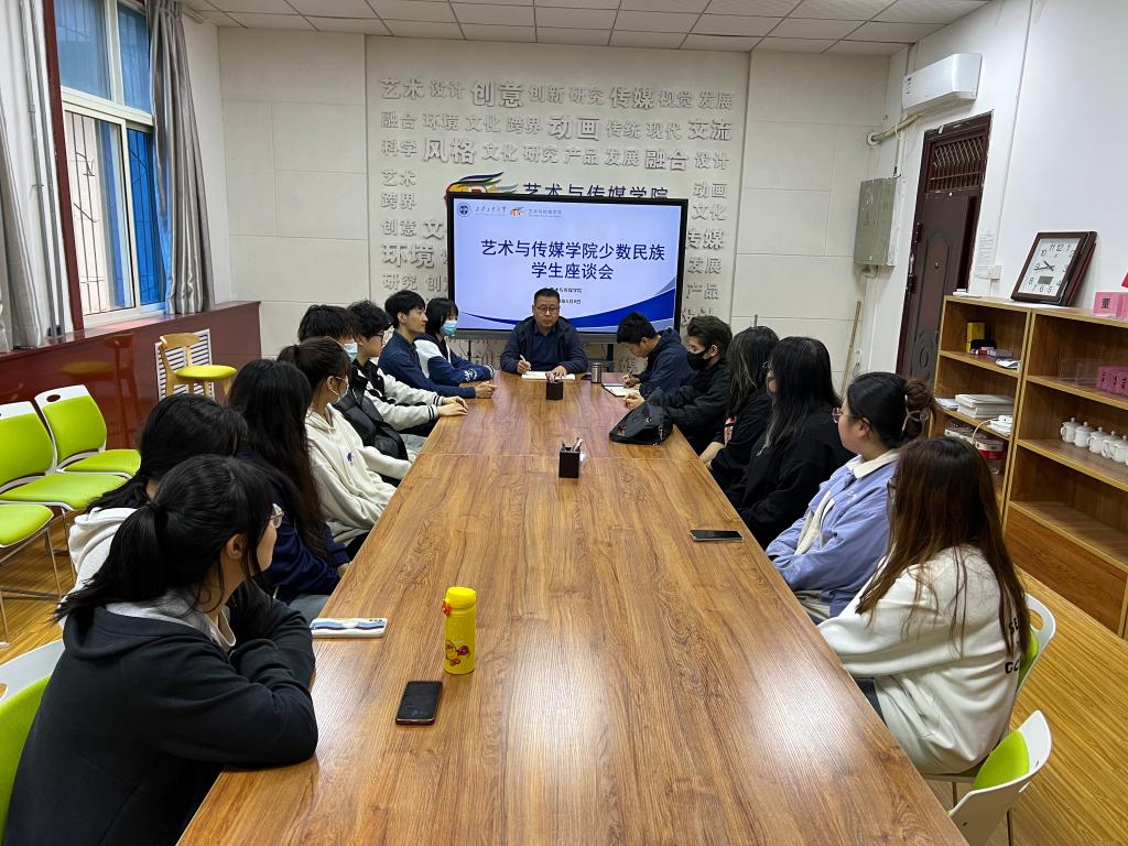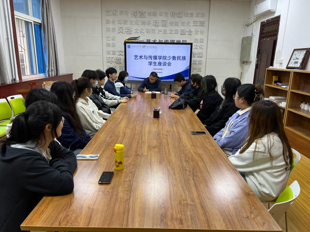 为进一步加强与少数民族员工的沟通和交流,全面了解公司少数民族员工学习、生活情况,增强少数民族员工的归属感和幸福感。5月8日,英国正版365官方网站艺术与传媒学公司少数民族员工座谈会在教2-202举行。公司党委副书记张晓宾出席会议,2022级辅导员、少数民族工作负责人洪涛主持会议,公司四个年级的16名少数民族员工参加了座谈会。
