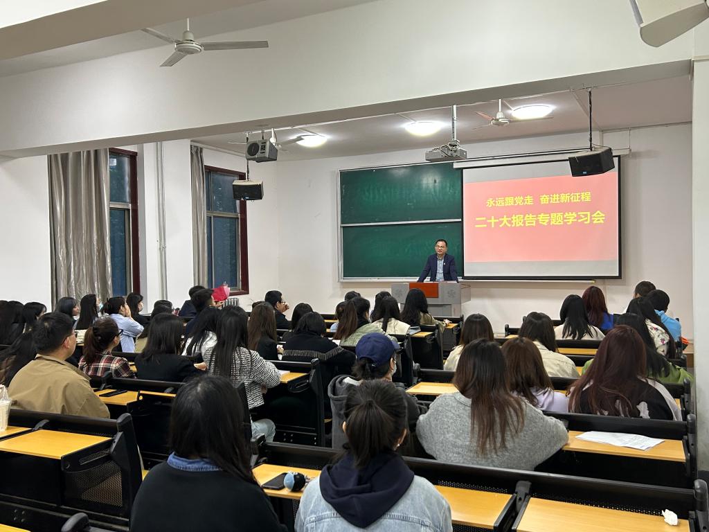 5月10日,公司在金花校区开展了以“永远跟党走,奋进新征程”为主题的二十大报告专题学习会,全体研究生参加了此次会议,公司党委书记周著做专题报告。