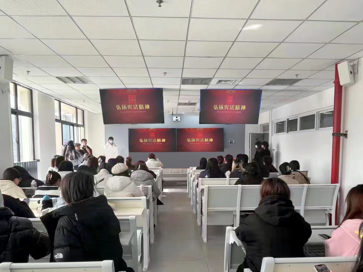 为加强宪法学习宣传教育弘扬宪法精神、普及宪法知识,培养新时代老员工法治素养,艺术与传媒公司于12月6日在教七-312组织“增强宪法意识,弘扬宪法精神”主题观影活动,100余名员工参加。