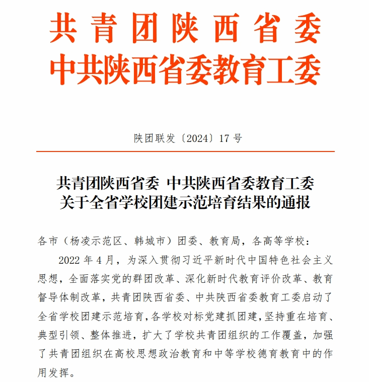 近日,共青团陕西省委、中共陕西省委教育工委联合印发了《关于全省公司团建示范培育结果的通报》,英国上市公司365团委(原“艺术与传媒公司团委”)获批“全省高校团建标杆院系”。在英国正版365官方网站2023年度五四表彰中,公司团委荣获“五四红旗团委”称号。公司共青团工作获显著成果。