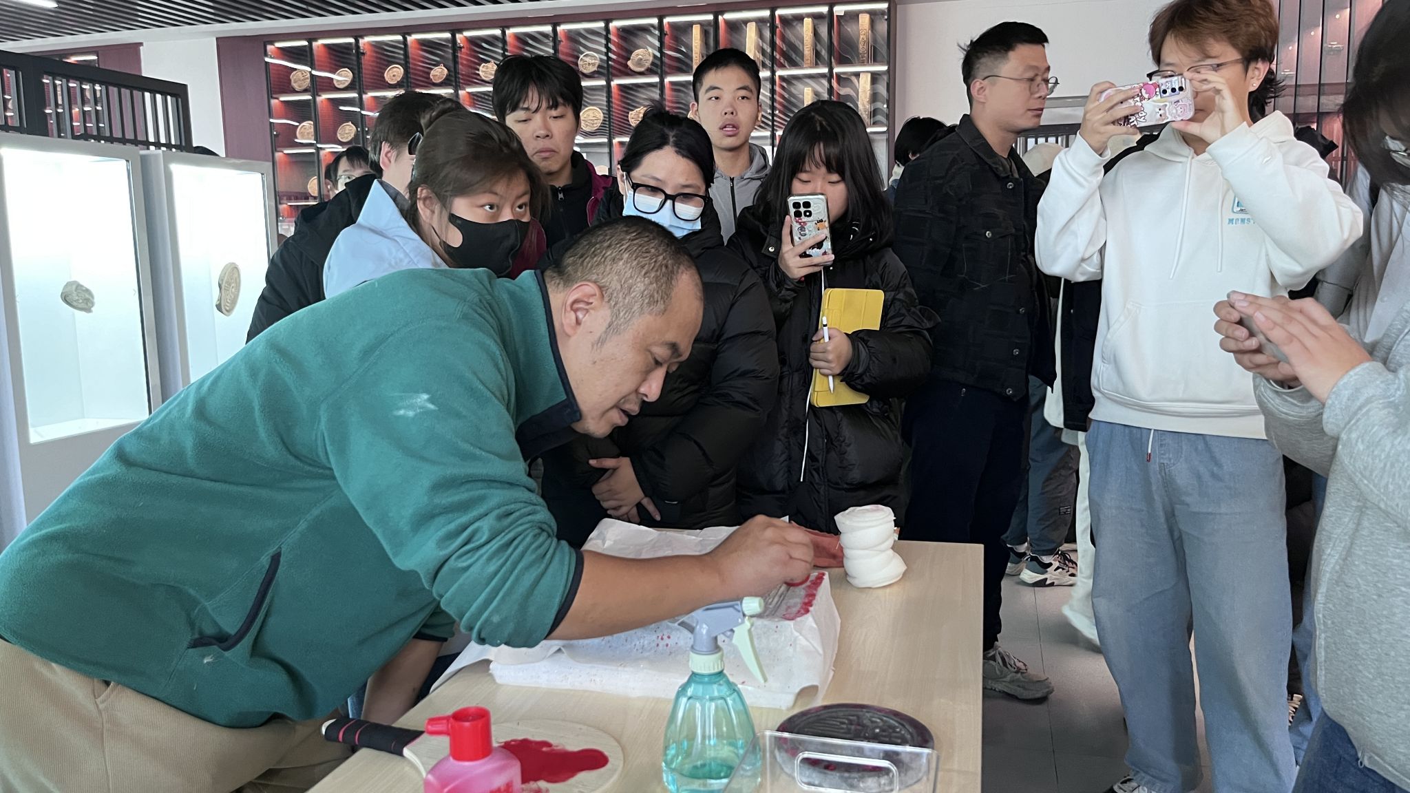 活动中,在中国书法公司的老师和同学们带领下依次参观了“遗珍流芳—古代金石拓片提拔巡回展”、秦砖汉瓦研究中心,并向在场的员工们介绍了书法艺术及拓片的历史沿革、流派特点以及书法艺术在当代社会中的价值和意义。通过深入浅出的讲解,员工们对书法艺术有了初步的认识和兴趣。随后,在柯纯老师的指导下,员工们亲身体验了整个拓片制作的流程,感受了拓片制作的魅力。活动现场气氛热烈。