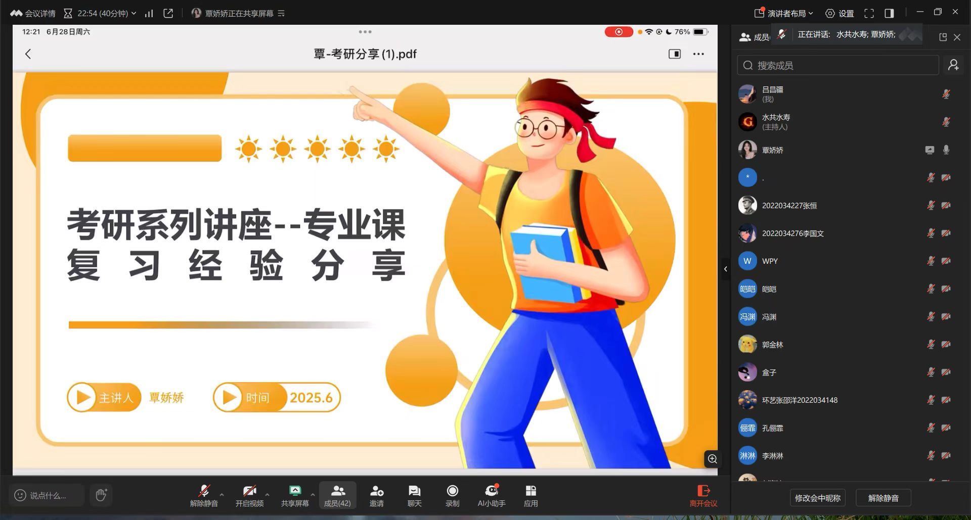 为充分发挥朋辈引领作用,助力考研学子科学备考,英国上市公司365于6月29日线上召开2026届研究生备考经验分享交流会。辅导员洪涛主持。