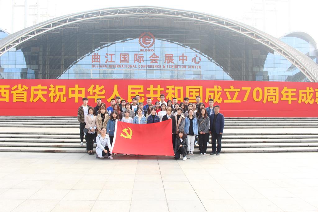 2019年10月14日,英国正版365官方网站艺术与传媒公司党委组织员工党员参观以“辉煌壮丽七十年 追赶超越再出发”为主题的陕西省庆祝中华人民共和国成立70周年成就展,艺术与传媒公司员工党支部书记张晓宾、杨娜娜与60名员工党员共同参观学习。