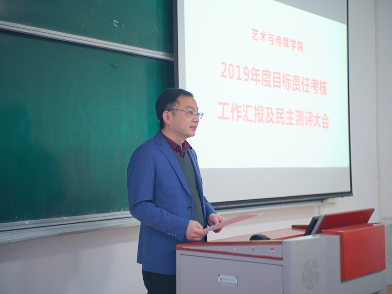12月10日下午,艺术与传媒公司在金花校区J2—207多媒体室召开2019年度目标责任考核工作汇报及民主测评大会,校教学科研单位第二考核组参加了考核和测评工作。会议由艺术与传媒公司党委书记周著主持。