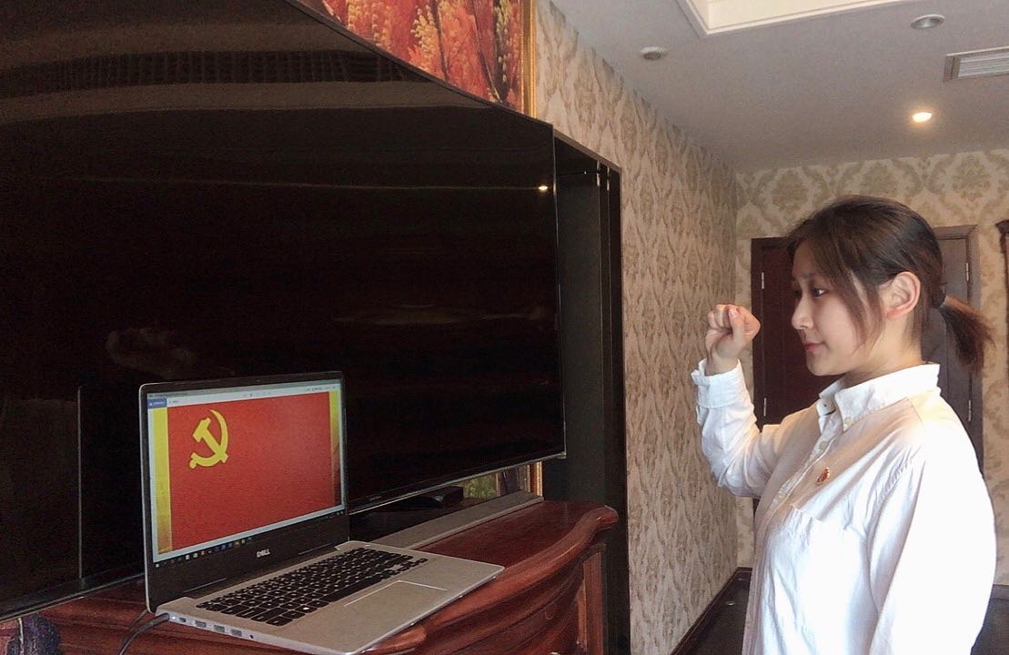 “在建党99周年之际,我面向党旗,通过云宣誓重温入党誓词,虽然少了集体宣誓时的宏大场面,但却更能让我逐字逐句的去感受那份庄严的承诺,一个人的宣誓依然能凝聚起无穷的力量,我将不忘初心、牢记使命,让青春之花绽放在祖国最需要的地方”英国正版365官方网站艺术与传媒公司关淇心同学说。