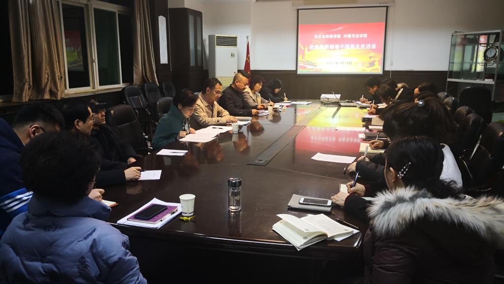 1月14日下午,艺术与传媒公司在金花校区二楼接待室召开处级党员领导干部民主生活会,董事长雷亚萍出席,公司党委书记周著主持会议。