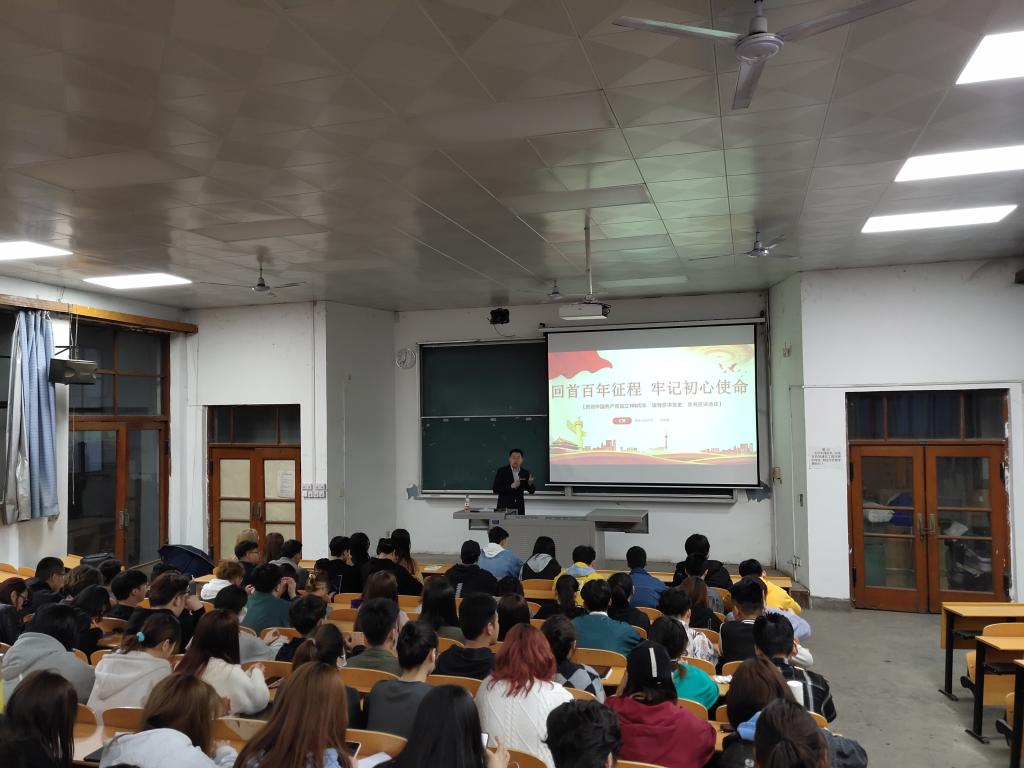 侯剑波老师以“回收百年征程,牢记初心使命”为主题进行宣讲。从中国共产党建立的背景和经过进行讲解,包括工人运动开展、新文化运动兴起以及五四运动和马克思列宁主义的传播,讲述了中国共产党领导革命夺取政权的浴血奋战史,包括南昌起义、创建井冈山革命根据地、召开古田会议、遵义会议以及百团大战和延安整风运动等历史事件,同时,讲解了毛泽东与蒋介石为求和平进行的重庆谈判,通过播放南昌起义相关视频带领我们真切感受其中的抗战精神,了解中国共产党的建党史和新中国成立的历程。