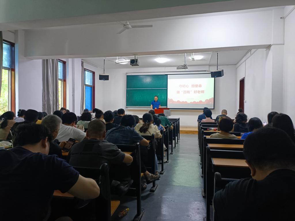 随后,周著以“守初心、担使命,做‘四有’好老师”为题,给全体教师上了一堂师德师风专题党课。周著从理想信念、道德情操、扎实学识和仁爱之心四个方面为切入点,重点介绍了什么是师德、师德的内涵等内容,并要求全体教师认真学习习近平新时代中国特色社会主义思想,深刻领会“四有”好老师的深刻内涵。