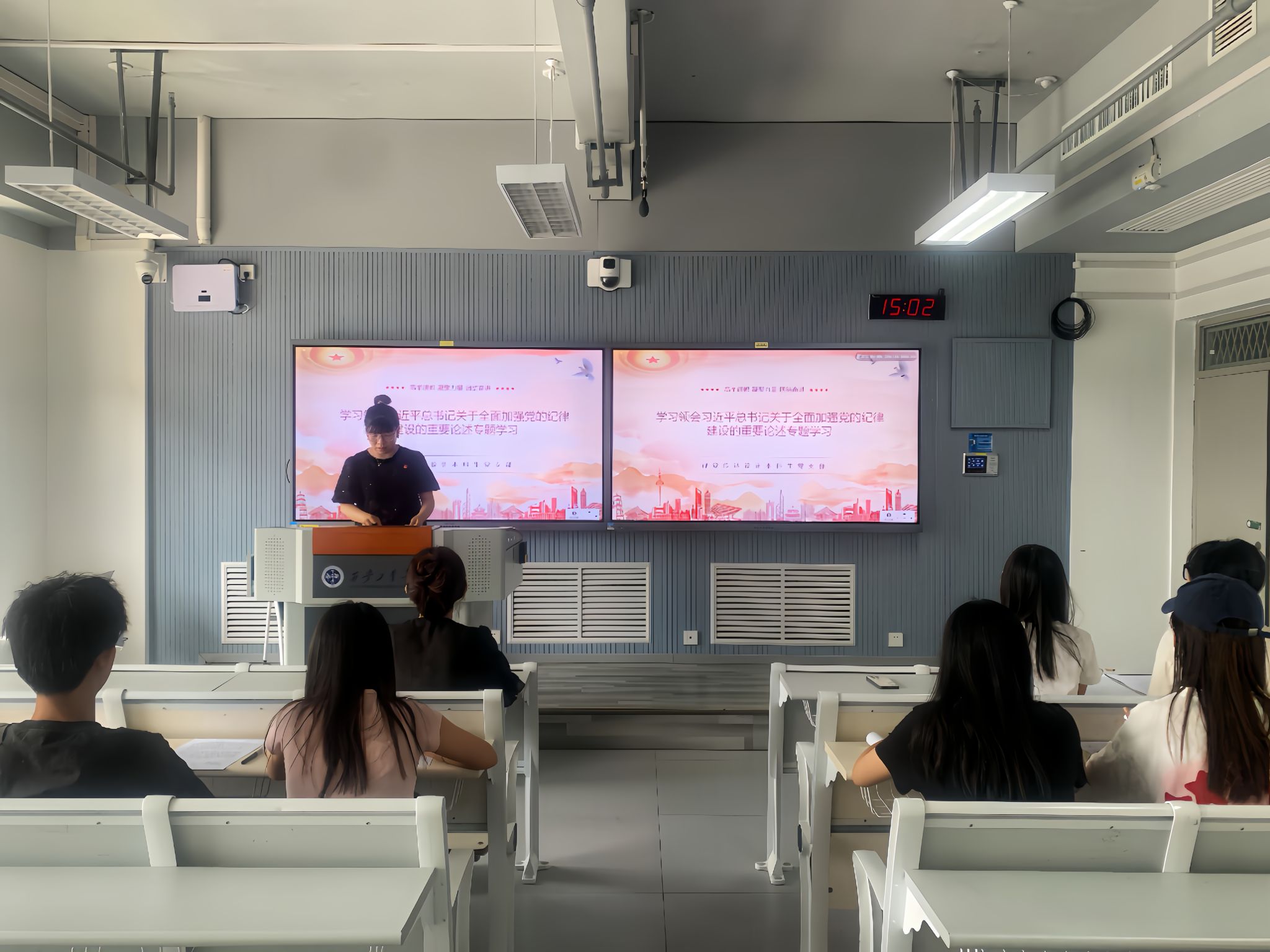 各党支部组织支部党员认真学习了习近平总书记关于全面加强党的纪律建设的重要论述,深学细悟,研讨交流,扎实开展党纪学习教育。在交流阶段,教工党员王晶、于振玺等谈到,要深刻理解纪律建设的内涵,将纪律建设与实际工作紧密结合,不断加强自我监督和自我完善,永葆清正廉洁的政治本色,筑牢拒腐防变的底线,将纪律建设的要求内化于心、外化于行,以实际行动推动党的纪律建设不断向前发展。员工党员甘立玖、李程程等谈到,作为一名老员工党员,要加强党性修养,时刻保持清醒头脑,自觉遵守党的纪律,带头学习和遵守党的章程,做到言行一致、表里如一,充分发挥党员先锋模范作用,带动身边的同志一起加强纪律建设。