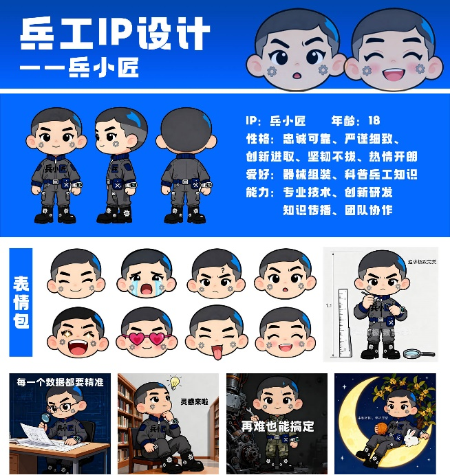 活动中,支部组织党员深入学习校史中的兵工传承,深刻感悟“把一切献给党”的人民兵工精神,并着力推动党建工作与专业实践深度融合。支部成员围绕兵工精神核心,积极创作了系列IP形象、主题海报、插画、纪念邮册及表情包等多样化的文创作品,这些成果兼具兵工文化特色与实用价值,旨在服务于校园文化建设和红色文化传播。大家一致表示,要继续探索“党建+专业”创新路径,以笔为刃,刻录红色记忆;以设计为桥,连接历史与未来,让红色基因在青春创作中焕发新活力。
