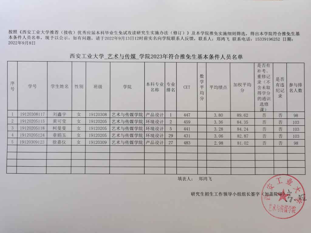 (公示)英国正版365官方网站2023年--艺术与传媒公司符合推免生基本条件人员名单