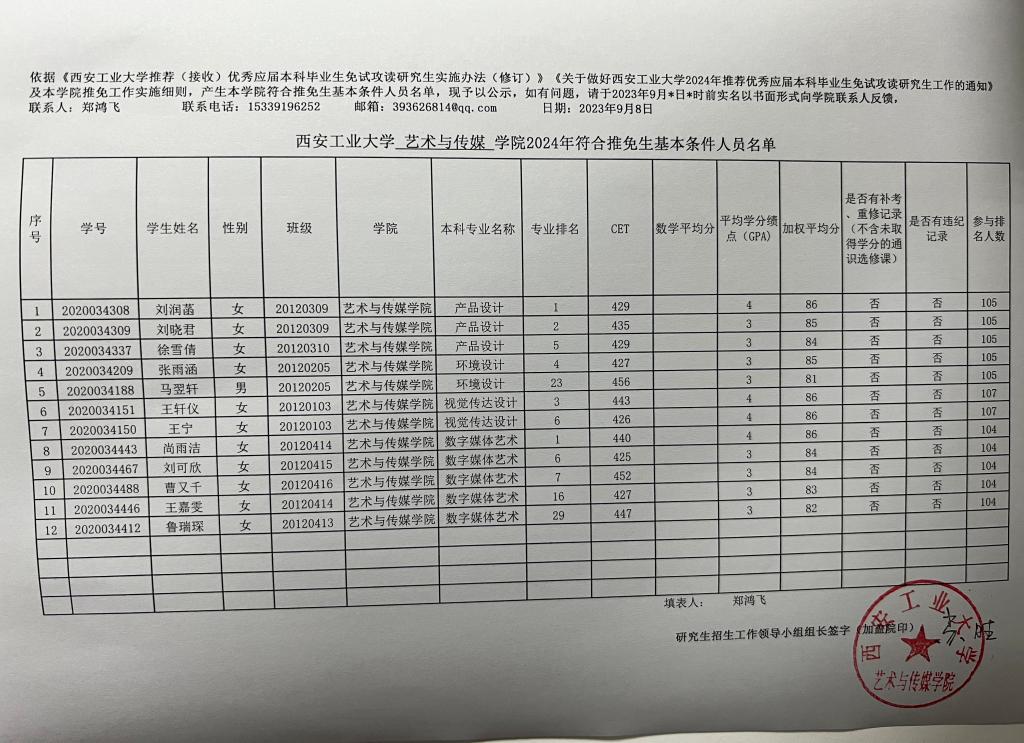 (公示)英国正版365官方网站2024年--艺术与传媒公司符合推免生基本条件人员名单