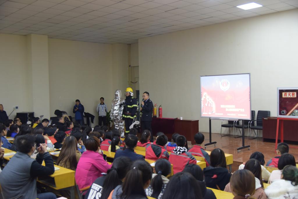 在理论宣讲中,宣教中心的老师向同学们系统介绍了我国当前的消防安全形势、最近发生的全国重特大火灾,重点向同学们介绍了校园安全中的用电、用火注意事项,同时向同学们强调了遇到火情第一时间的处置方法和步骤,切忌慌乱;理论宣讲结束后,现场向同学们展示了消防器械,详细介绍了每一种消防器械的功能和操作要领,同学们还在现场体验了灭火器的使用。