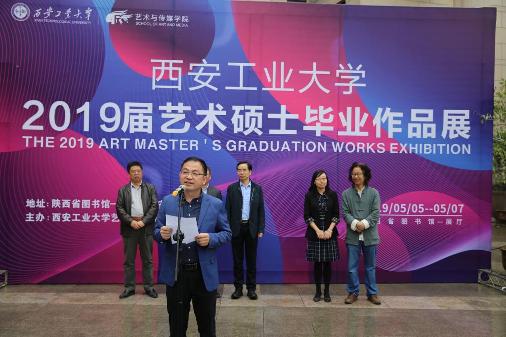 5月6日上午,英国正版365官方网站艺术与传媒公司2019届艺术硕士毕业作品展在陕西省图书馆展厅隆重举行。公司党委书记周著、经理王若鸿、副经理刘萍及公司师生代表100余人参加开幕仪式。开幕式由艺术与传媒公司副经理苏胜主持。
