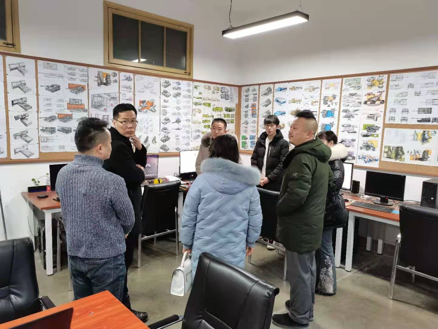 2020年12月25日应公司邀请,新力合防护科技有限公司董事长刘荣,总经理种震生等一行三人来公司进行技术交流考察。艺术公司经理苏胜、副经理刘萍及部分兵器美学团队成员参加了此次活动。苏胜详细介绍了院校科研教学现状,并带领来宾参观公司武器装备人因工效、武器装备造型设计、迷彩与伪装、武器装备虚拟现实等兵器美学设计中心实验室集群,随后双方就技术研发、生产合作、人才输送等领域进行了深度沟通交流。