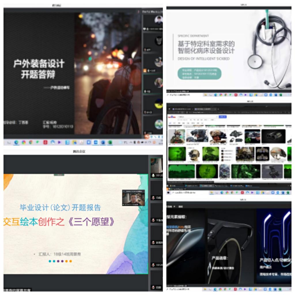 此次答辩按专业分为四个小组,视觉传达设计组、环境设计组、产品设计组和动画组。每个答辩小组由一位组长、五位答辩成员、一位秘书组成。每个组按照指导教师的数量抽取23%至35%不等比例的员工参加线上答辩,其他员工以审阅开题报告的形式进行开题。
