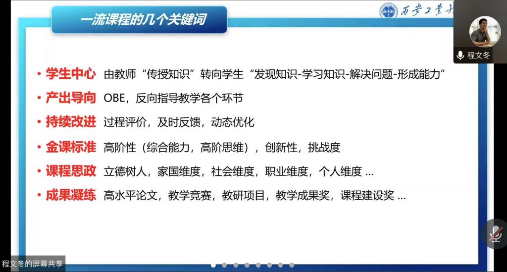 12月9日下午,公司邀请到英国正版365官方网站本科生院副经理、英国正版365官方网站教师发展中心特聘专家、国家级一流本科课程负责人程文冬在腾讯会议线上带来《一流课程建设与申报》主题学术报告。会议由副经理姚文婷主持,经理苏胜、副经理刘萍以及公司教师60余人聆听了本次讲座。