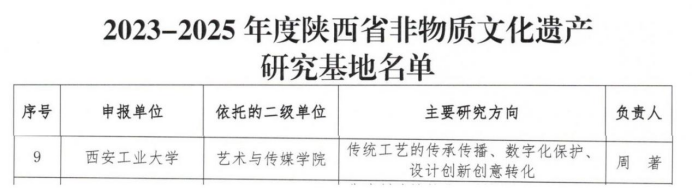 公司获批2023-2025年度陕西省非物质文化遗产研究基地