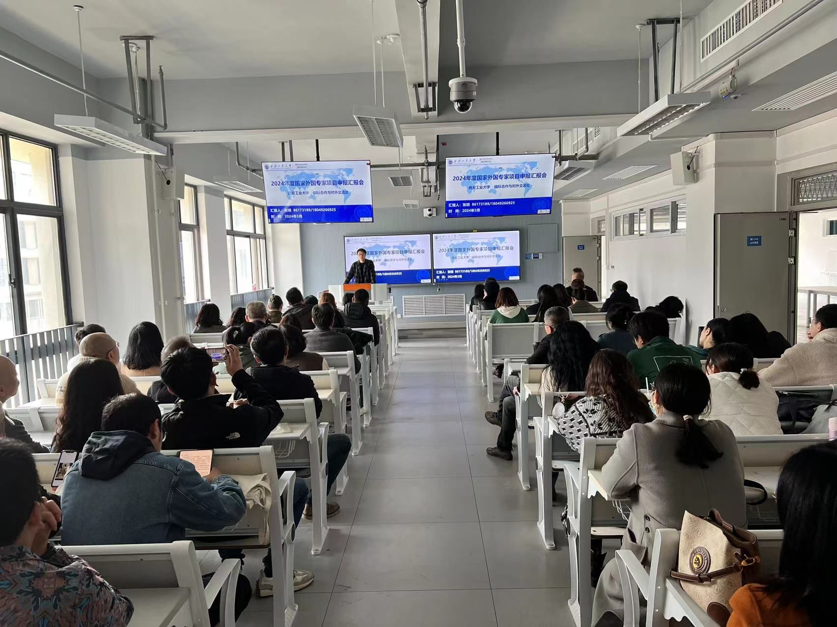 3月15日下午,公司邀请到校国际合作与对外交流处张玥老师,在教七楼315举办了2024年度国家外国专家项目申报讲座。公司党政领导及全体教师70余人参加了本次讲座。讲座由公司经理、省兵器工业中心主任苏胜主持。