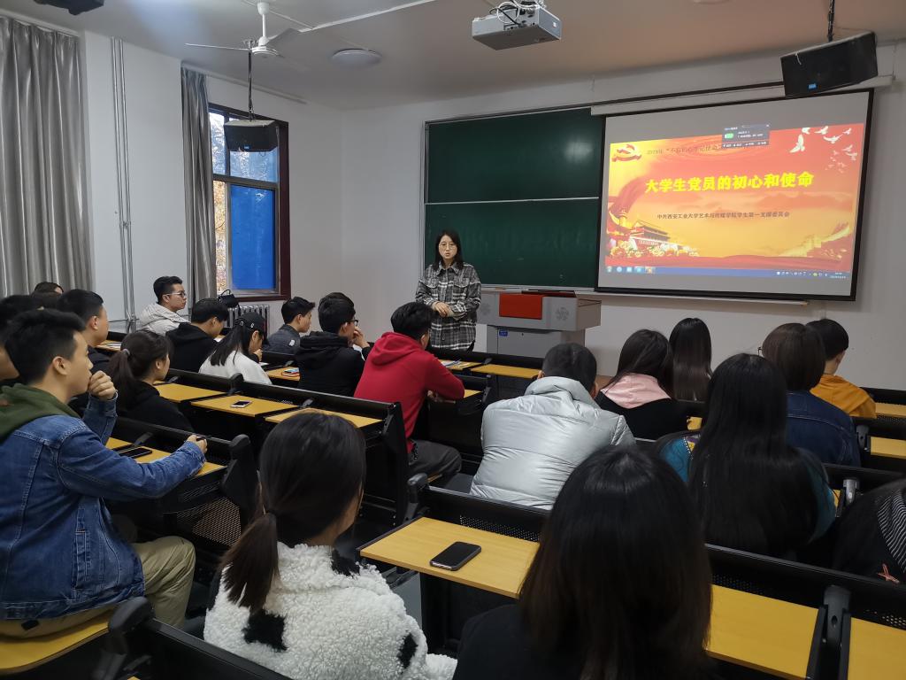 2019年11月14日,公司员工第一党支部于金花校区教2-207举办“老员工党员的初心和使命”专题党课。员工第一党支部书记孙雅茹老师主讲,员工第一党支部全体党员聆听了党课。