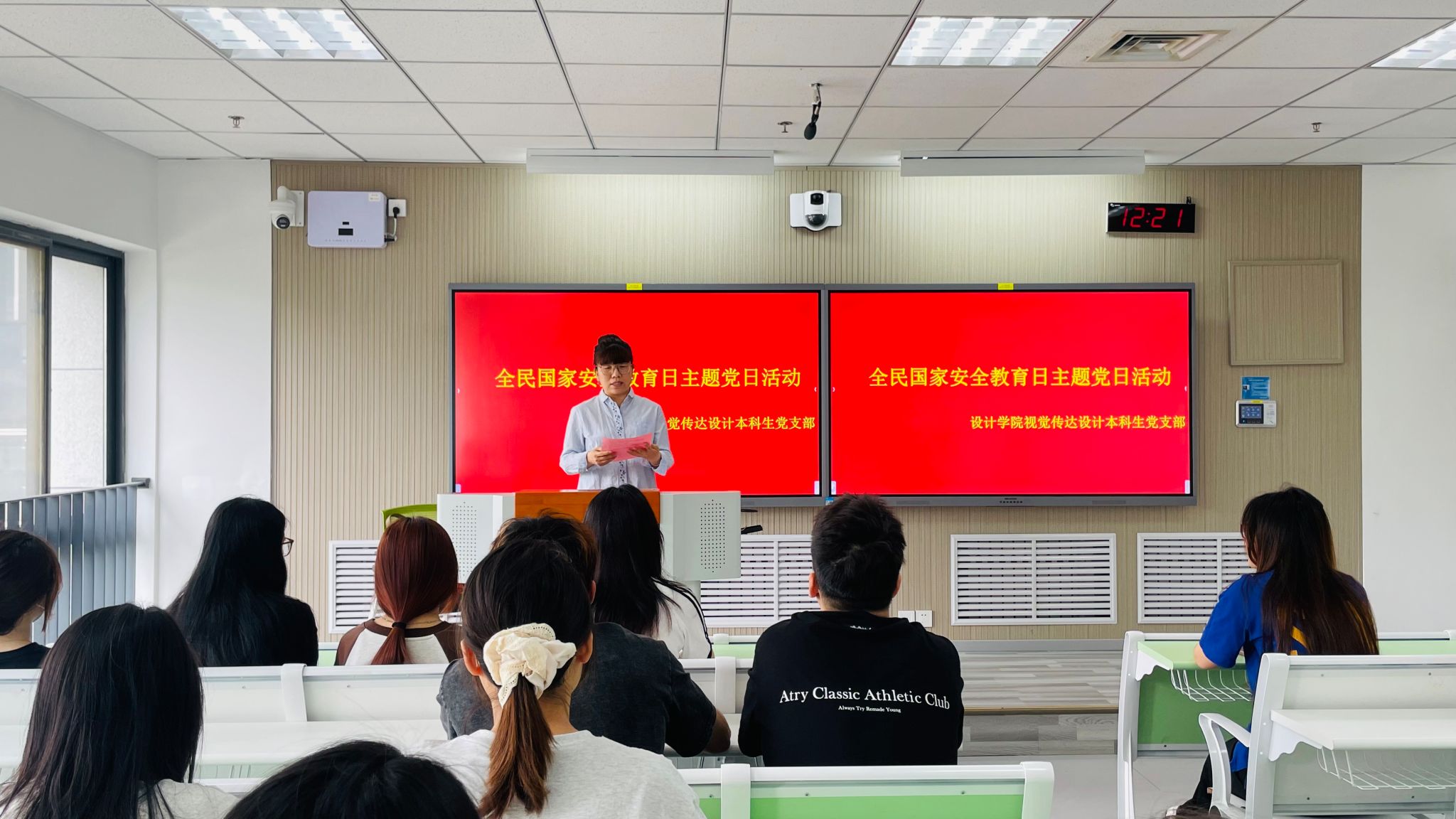 4月15日,视觉传达设计本科生党支部于教7-213开展“国家安全·青春挺膺”全民国家安全教育日主题党日活动,党支部书记杨娜娜主持。