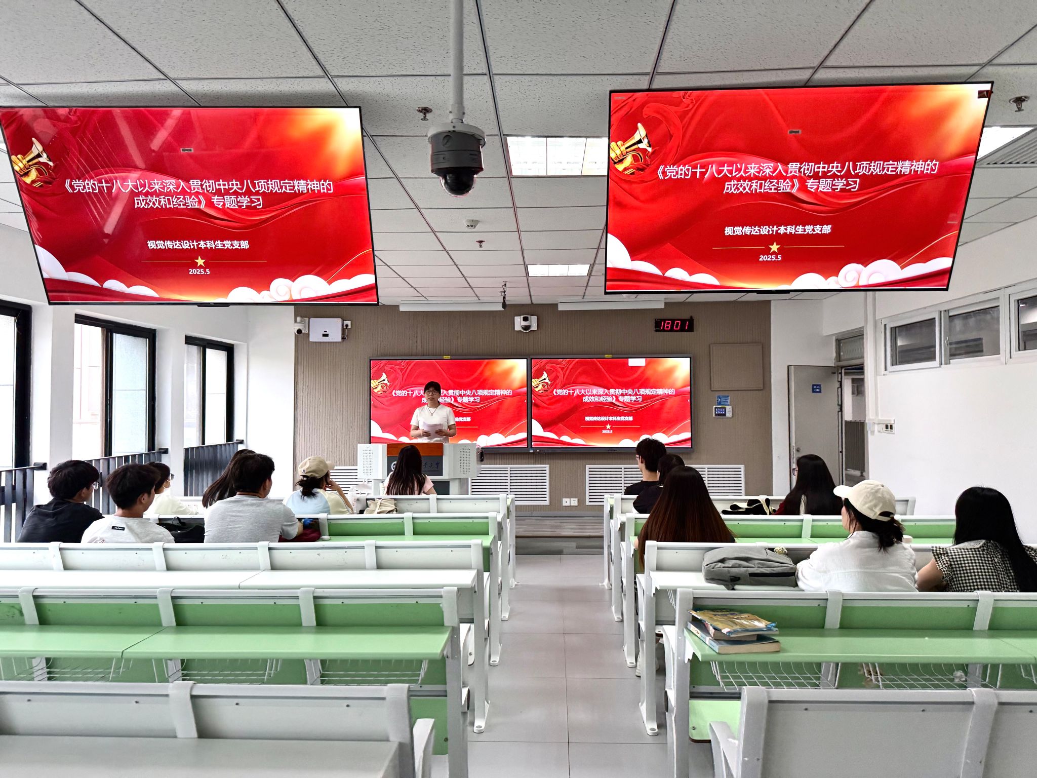 5月21日,视觉传达设计本科生党支部于教7-213开展了中央八项规定精神专题学习,党支部书记杨娜娜主持。
