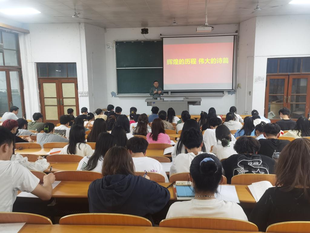 周著与大家一起回顾了中国共产党百年奋斗光辉历程围绕脱贫攻坚、科教兴国、人才强国、中国梦等方面,结合专业设计过程中的具体案例进行讲解。周著强调,要加强理论素养,提高政治理论水平,牢记党的教挖掘前进的动力,做有理想、敢担当、能吃苦、肯奋斗的新时代好青年