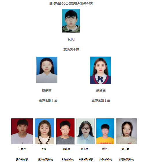 负责工作:带领组织进行志愿者活动,辅助主席完成各项事宜。