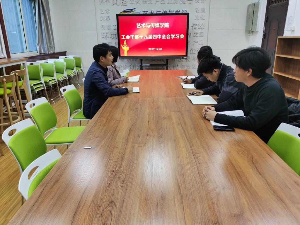 12月31日,按照校工会《关于工会干部学习贯彻党的十九届四中全会精神的通知》安排,艺术与传媒公司工会在J2-202教室召开十九届四中全会学习会。会议由王光奎主持。