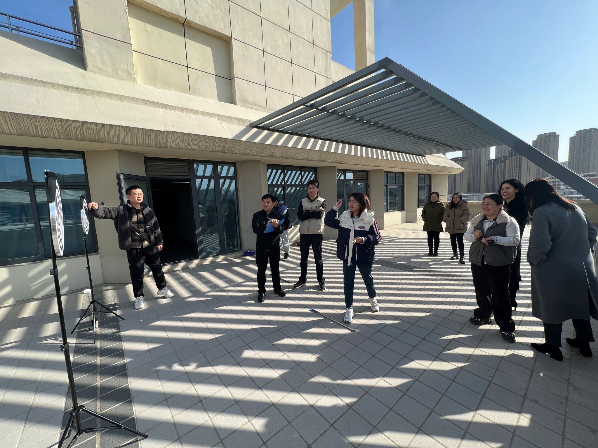 为丰富办公室教职员工的文体生活,活跃工作气氛,推崇健康生活理念,11月28日上午,办公室工会小组在教7楼6楼平台举办首届教职工飞镖比赛。全体办公室成员参加比赛。