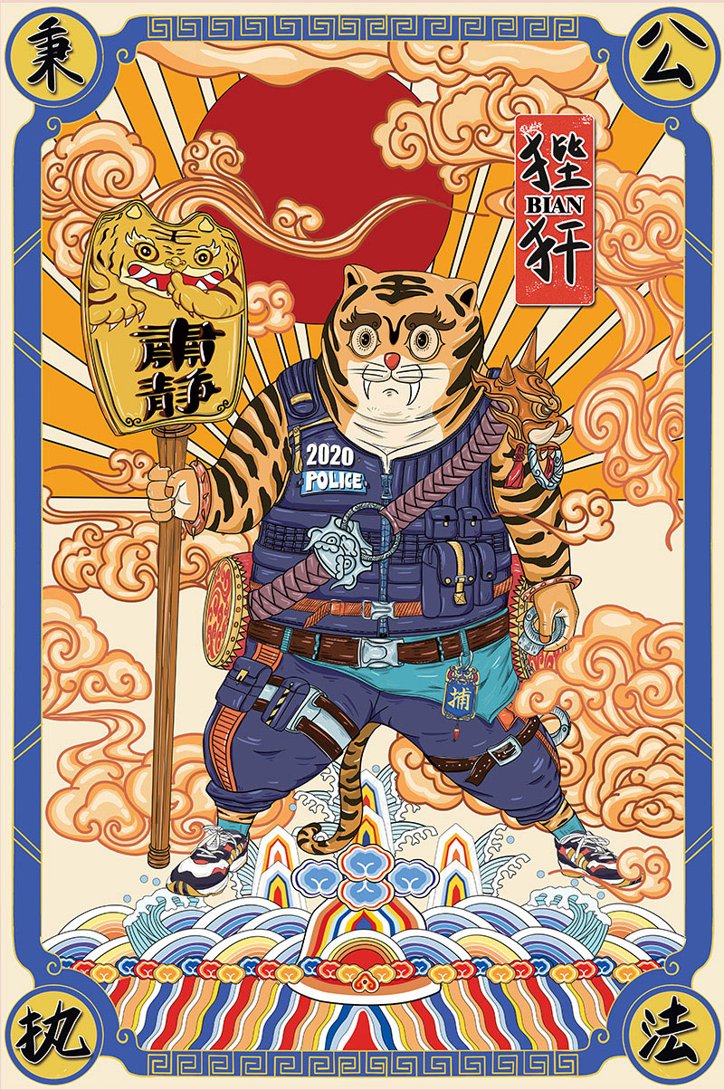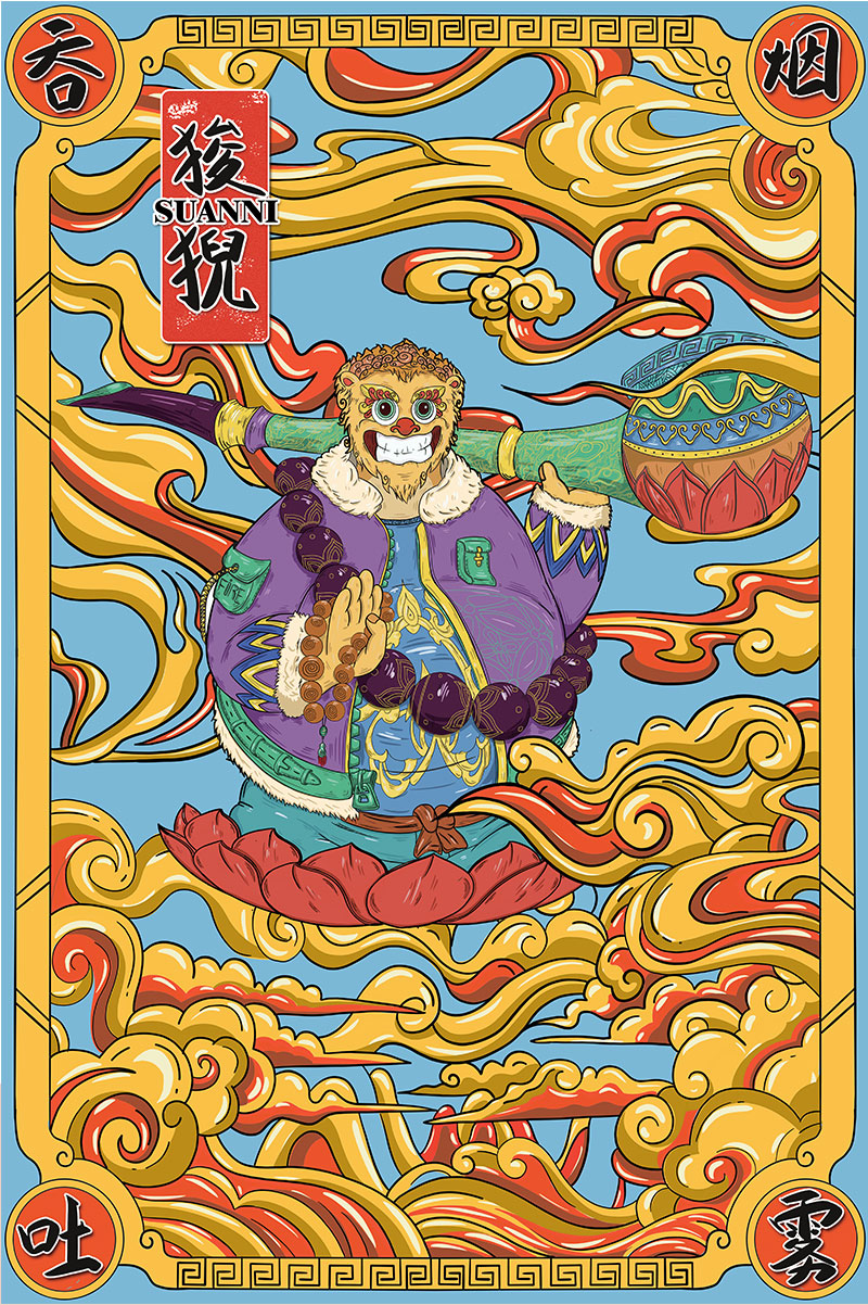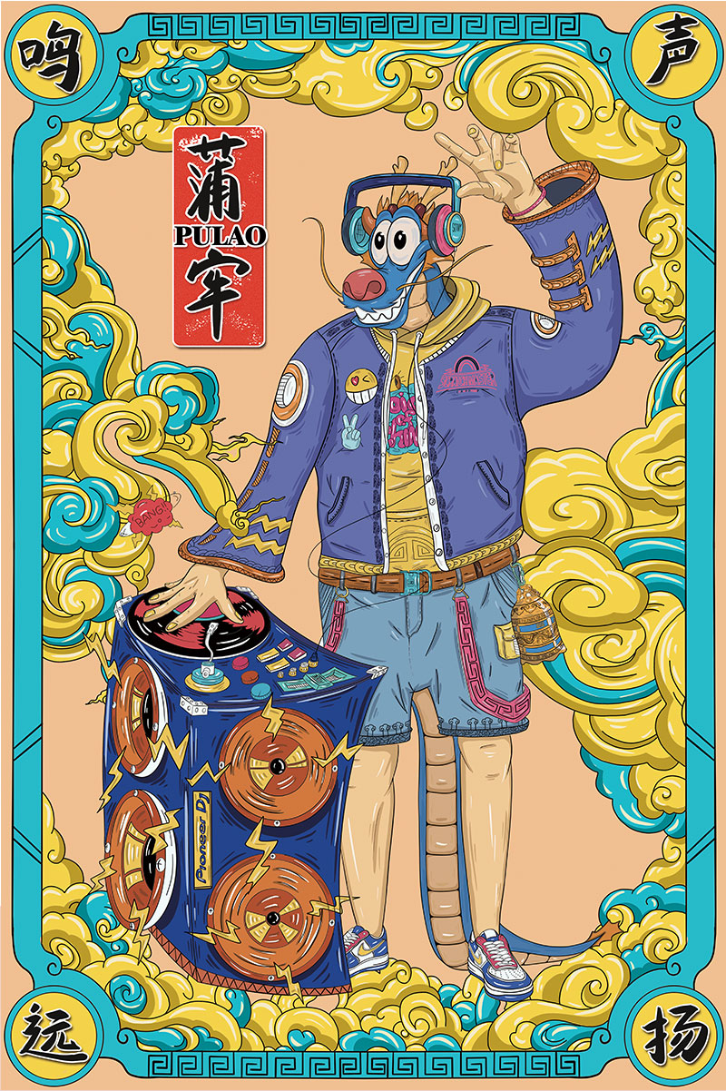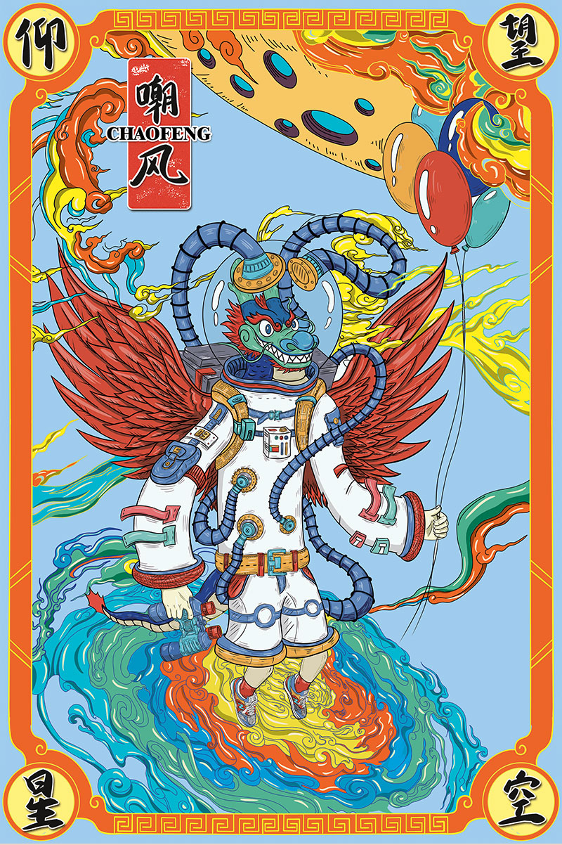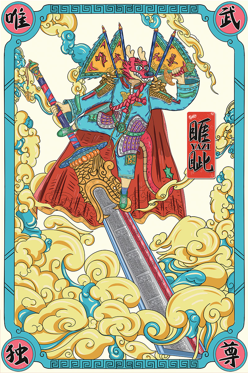 九龙子造型符号具有丰富的传统文化内涵和浓厚的历史价值,将九龙子传统造型语言重新提炼出来,用现代设计眼光去看待它,发掘其中的文化魅力是非常有必要的。在具体的创新设计中,主要从国潮和Q萌两个方向展开。随着国力的不断增强,我国传统文化也在不断输出,“国潮文化”设计也应运而生,并且映射了文化自信的回归和青年群体对本土文化认同的显著提升。同样,九龙子文化是独一无二的,其独特的艺术造型对现代设计也能带来启发。“国潮”风格和“Q萌”卡通形象的创新再设计,可以促使年轻群体对九龙子文化产生深刻的记忆点,并且也符合对九龙子有趣造型语言的解读,更重要的是通过这一载体可将九龙子文化进行更好的传承和保护。