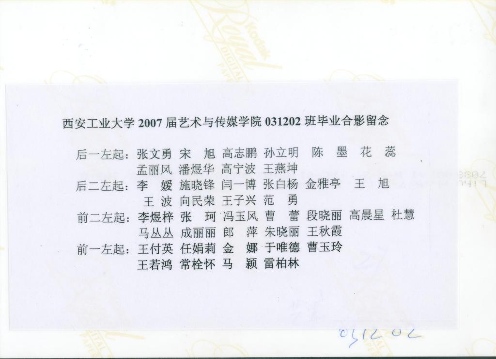 英国正版365官方网站2007届艺术与传媒公司031202班毕业合影