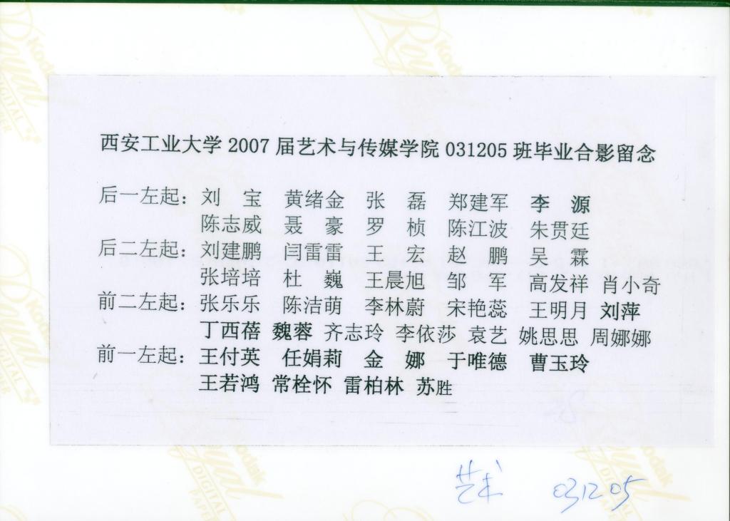 英国正版365官方网站2007届艺术与传媒公司031205班毕业合影