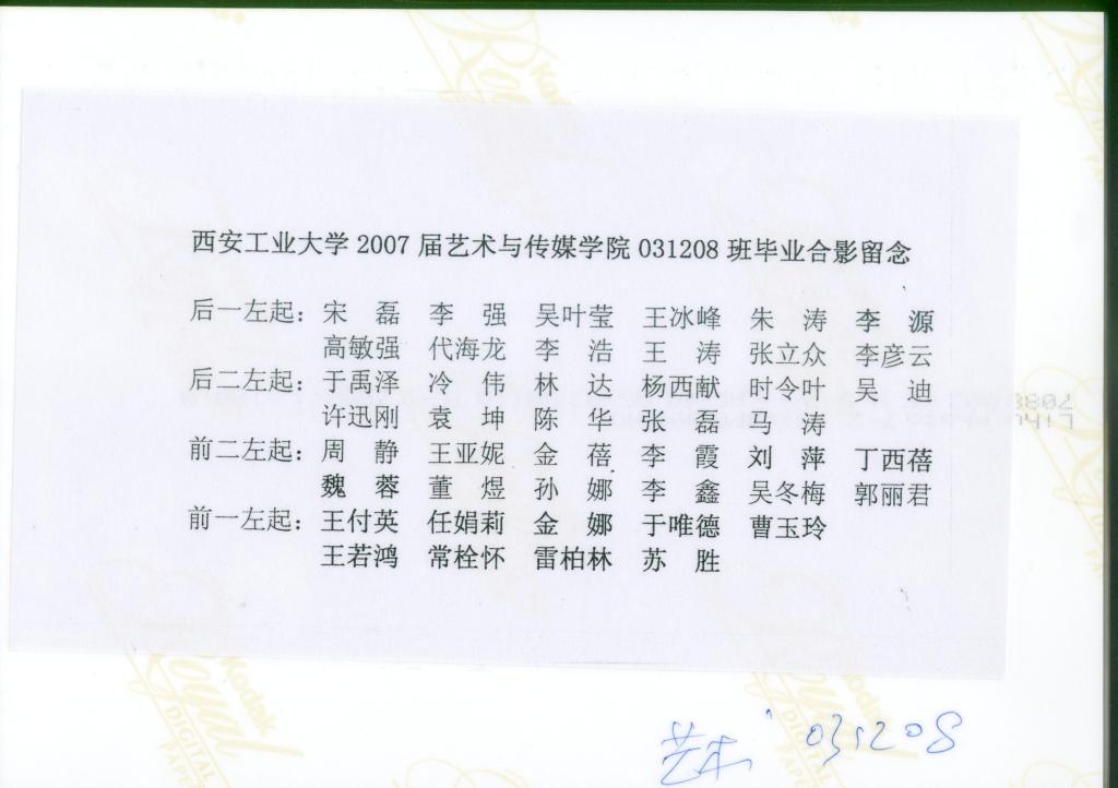 英国正版365官方网站2007届艺术与传媒公司031208班毕业合影