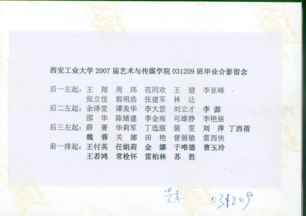 英国正版365官方网站2007届艺术与传媒公司031209班毕业合影