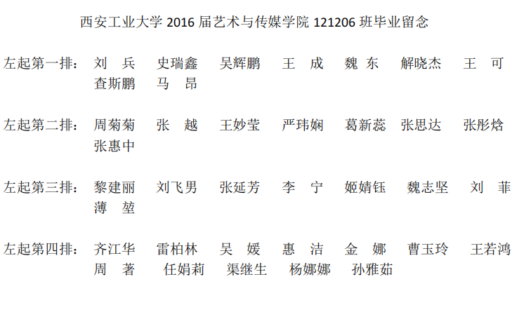 2016届艺术与传媒公司121206班毕业合影