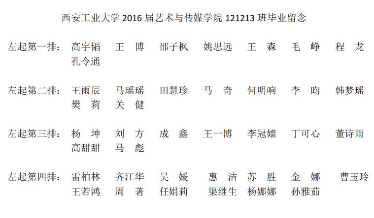 2016届艺术与传媒公司121213班毕业合影
