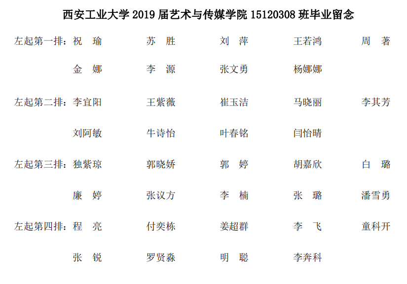 2019届艺术与传媒公司15120108班毕业合影