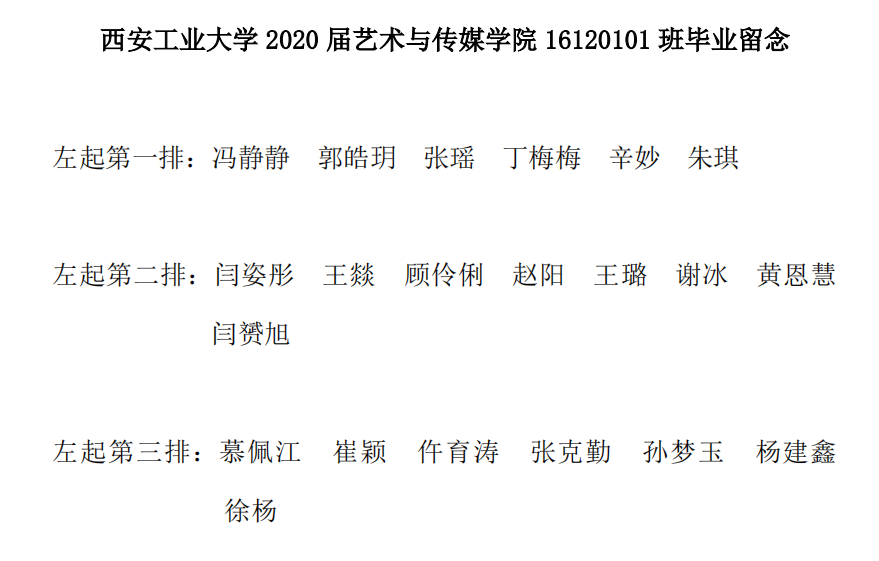 英国正版365官方网站2020届艺术与传媒公司16120101班毕业留念