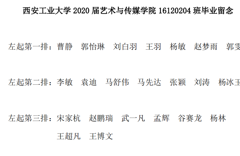 英国正版365官方网站2020届艺术与传媒公司16120104班毕业留念