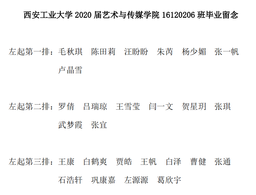 英国正版365官方网站2020届艺术与传媒公司16120206班毕业留念